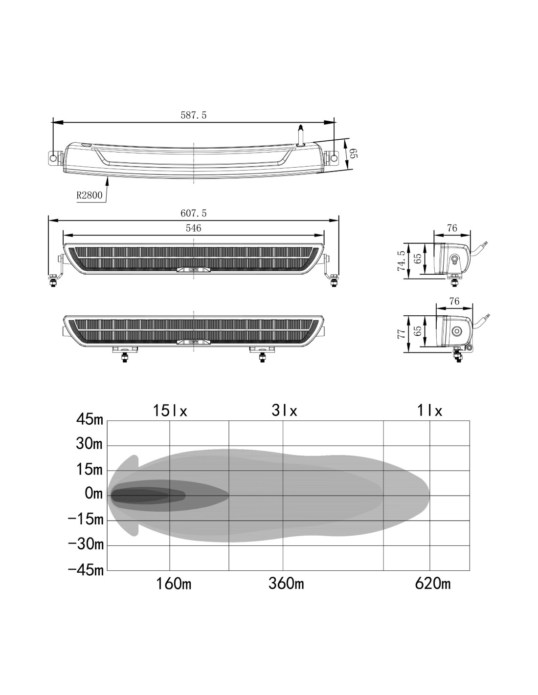 The OZZ DRB1 is a double row light bar designed for superior performance and durability. Featuring 34 high-performance diodes, it delivers impressive brightness with 9900 actual lumens in boost mode and 8070 in R112 mode, reaching up to 620 meters at 1 lux. This light bar combines a driving beam pattern for optimal visibility. It is built to withstand tough conditions with an IP68/IP69K rating and robust construction. Compliant with ECE R112 and EMC ECE R10 standards, the OZZ DRB1 enhances safety on your way forward. A reliable and great looking choice for enhancing your vehicle.