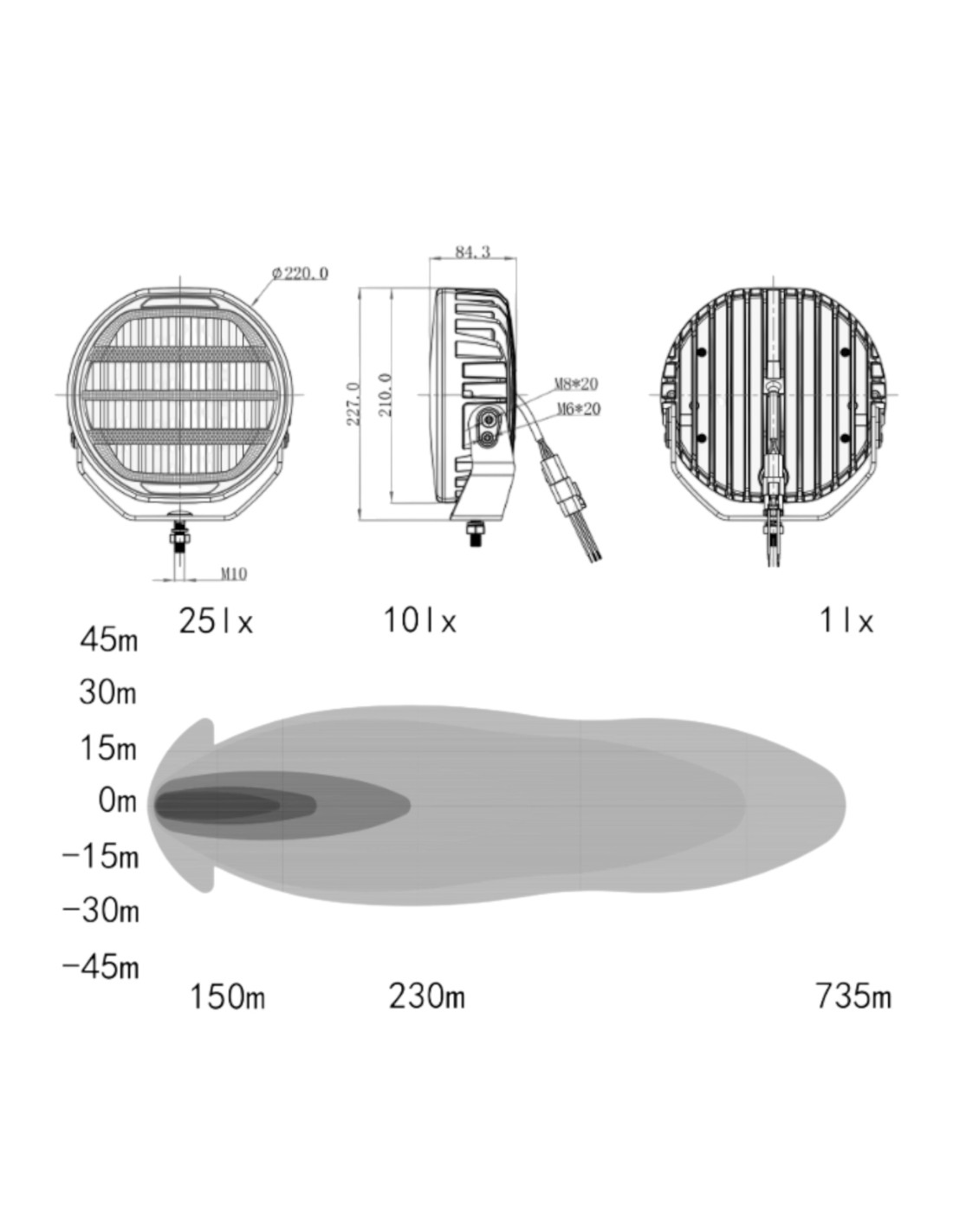 Experience unparalleled illumination with the XR3 P9″ 65’s boost function, delivering an impressive 10,424 lumens. This powerhouse driving light achieves 1 lux at an incredible distance of 735 meters, providing unmatched long-range visibility. Whether you’re navigating dark highways or tackling challenging off-road terrains, the XR3 ensures you have a clear view of what lies ahead.