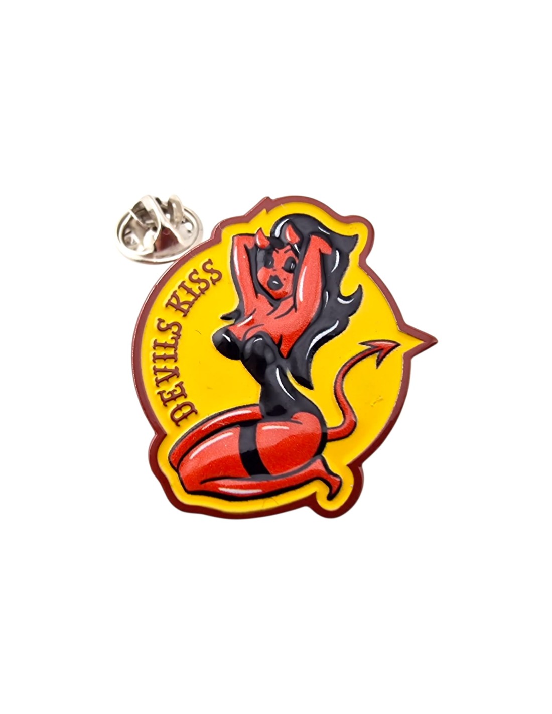 Przypinka metalowa Devils Kiss, rozmiar 30x34 mm