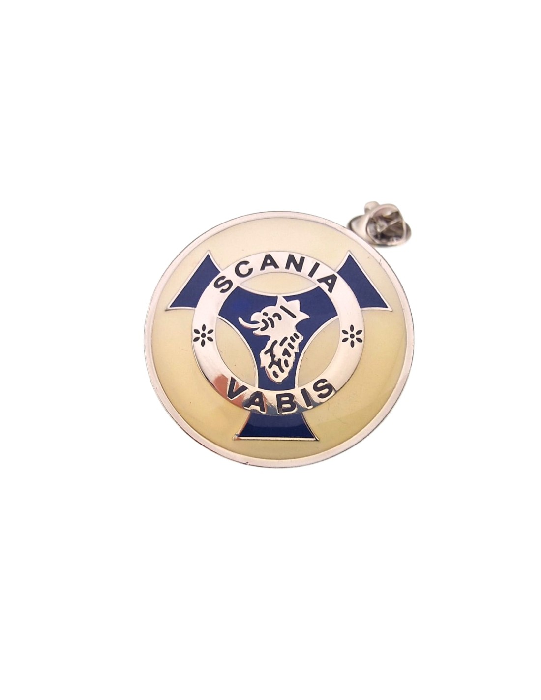 Przypinka metalowa Scania Vabis Silver/Blue, średnica 30 mm