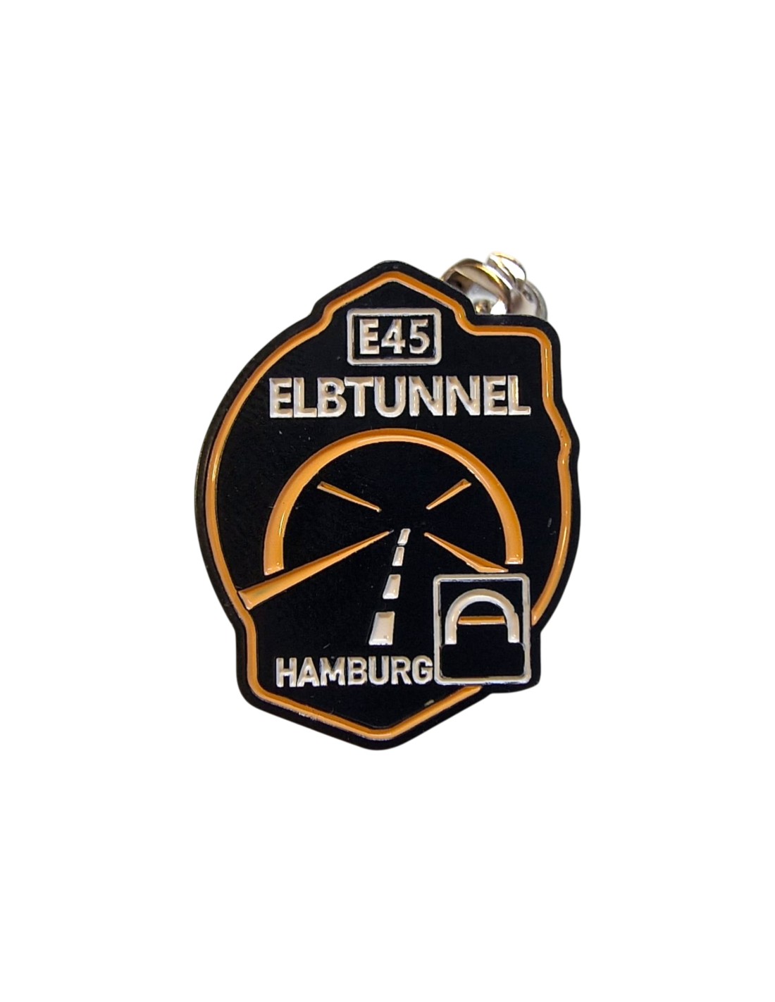 Przypinka metalowa E45 Elbtunnel, rozmiar 32x25,3 mm